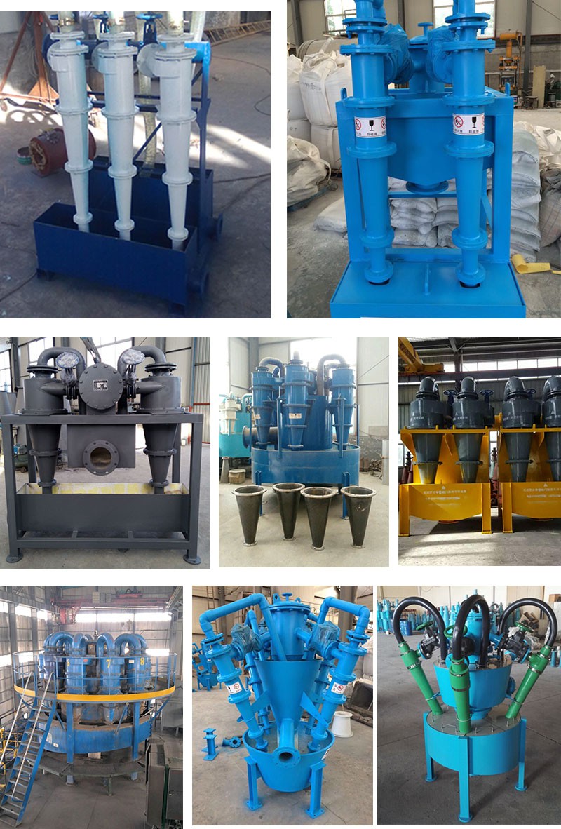 矿浆在压力作用下经给矿管沿柱体切线方向进入壳体,在壳内做回转运动,矿浆中的粗颗粒(或密度大的颗粒)因受到较大的离心力而进入回转流的外围,并同时随矿浆流向下流动,然后由底部沉砂嘴排出成为沉砂;细颗粒所受离心力较小,处于回转流中点并随液流髑上运动,再由溢流管排出成为溢流。